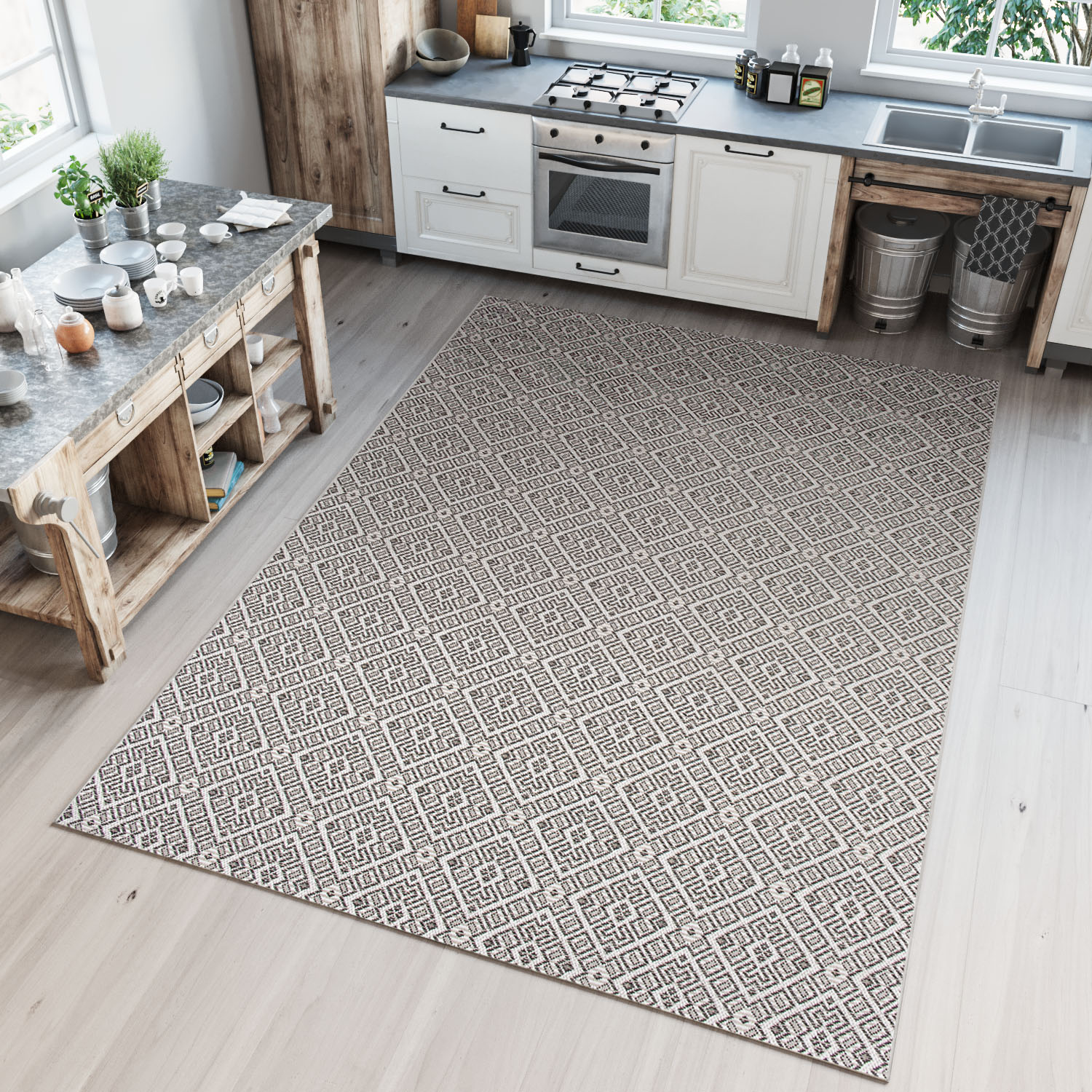 Capri vloerkleden passen in zowel klassieke als moderne kamers. Ze zijn ook geschikt voor buiten, bijvoorbeeld op een veranda of terras. U kunt zelf bepalen of u het vloerkleed binnen of buiten plaatst. Door de delicate kleuren van deze tapijten passen ze bij elke interieurstijl. Ze kunnen de belangrijkste decoratie van een kamer of een accessoire zijn. De patronen van de Capri-collectie zijn gemaakt voor mensen die van klassieke accessoires houden en voor mensen die de laatste trends volgen. In deze collectie vind je zowel bijna volledig gladde als rijk gedecoreerde tapijten.