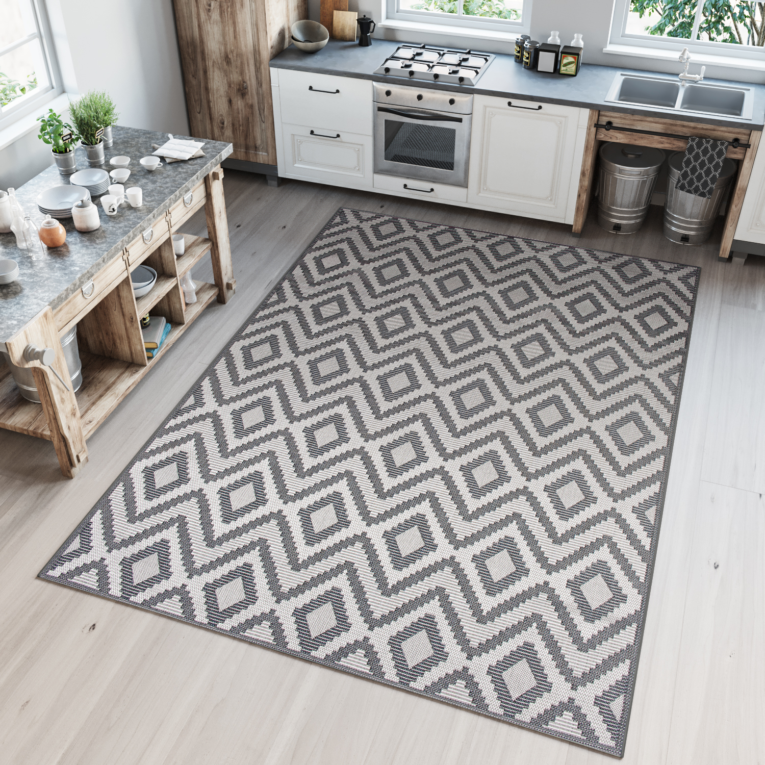 Capri vloerkleden passen in zowel klassieke als moderne kamers. Ze zijn ook geschikt voor buiten, bijvoorbeeld op een veranda of terras. U kunt zelf bepalen of u het vloerkleed binnen of buiten plaatst. Door de delicate kleuren van deze tapijten passen ze bij elke interieurstijl. Ze kunnen de belangrijkste decoratie van een kamer of een accessoire zijn. De patronen van de Capri-collectie zijn gemaakt voor mensen die van klassieke accessoires houden en voor mensen die de laatste trends volgen. In deze collectie vind je zowel bijna volledig gladde als rijk gedecoreerde tapijten.