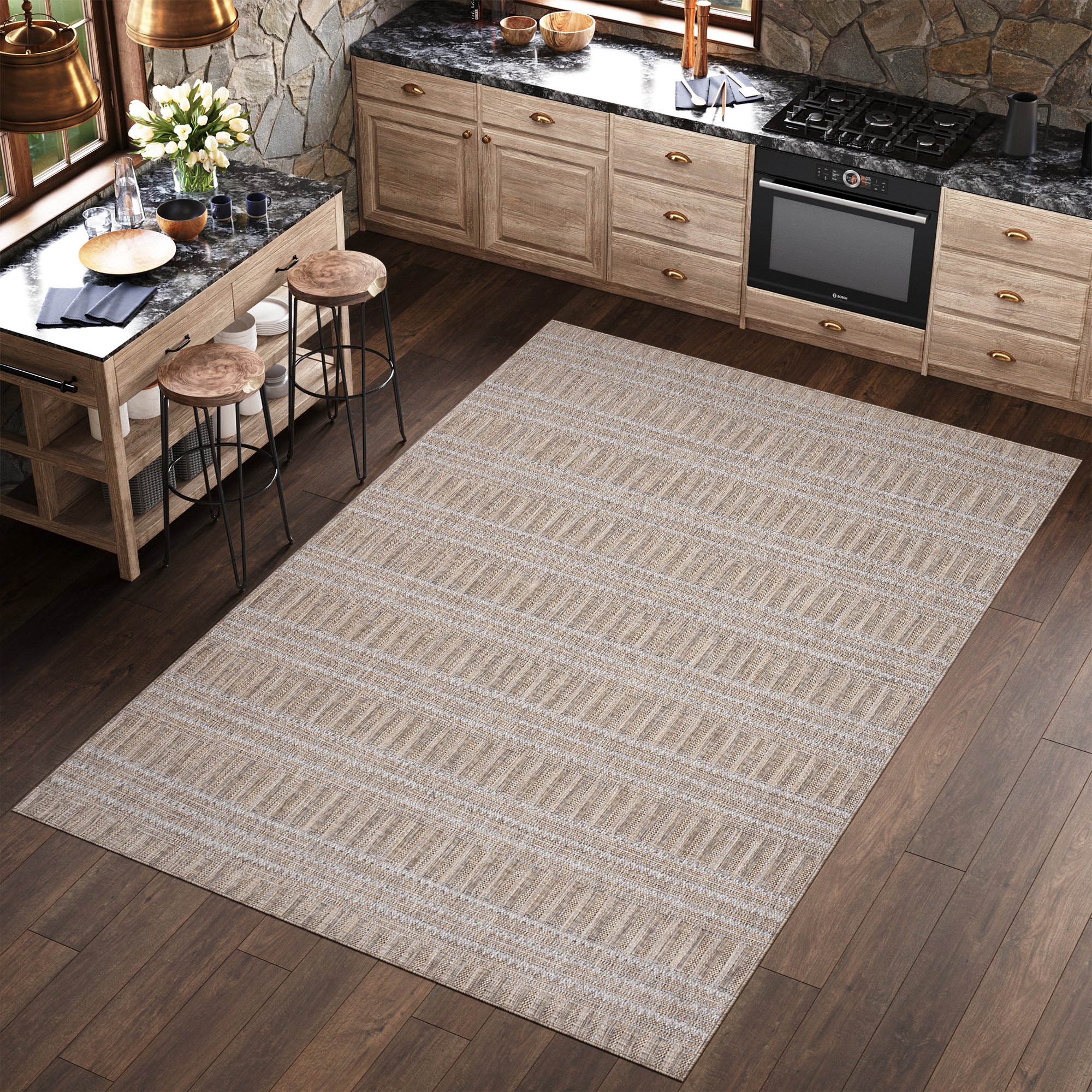 De overheersende kleuren – bruin en grijs – geven de collectie elegantie, terwijl moderne patronen een vleugje frisheid en karakter aan elke ruimte toevoegen.