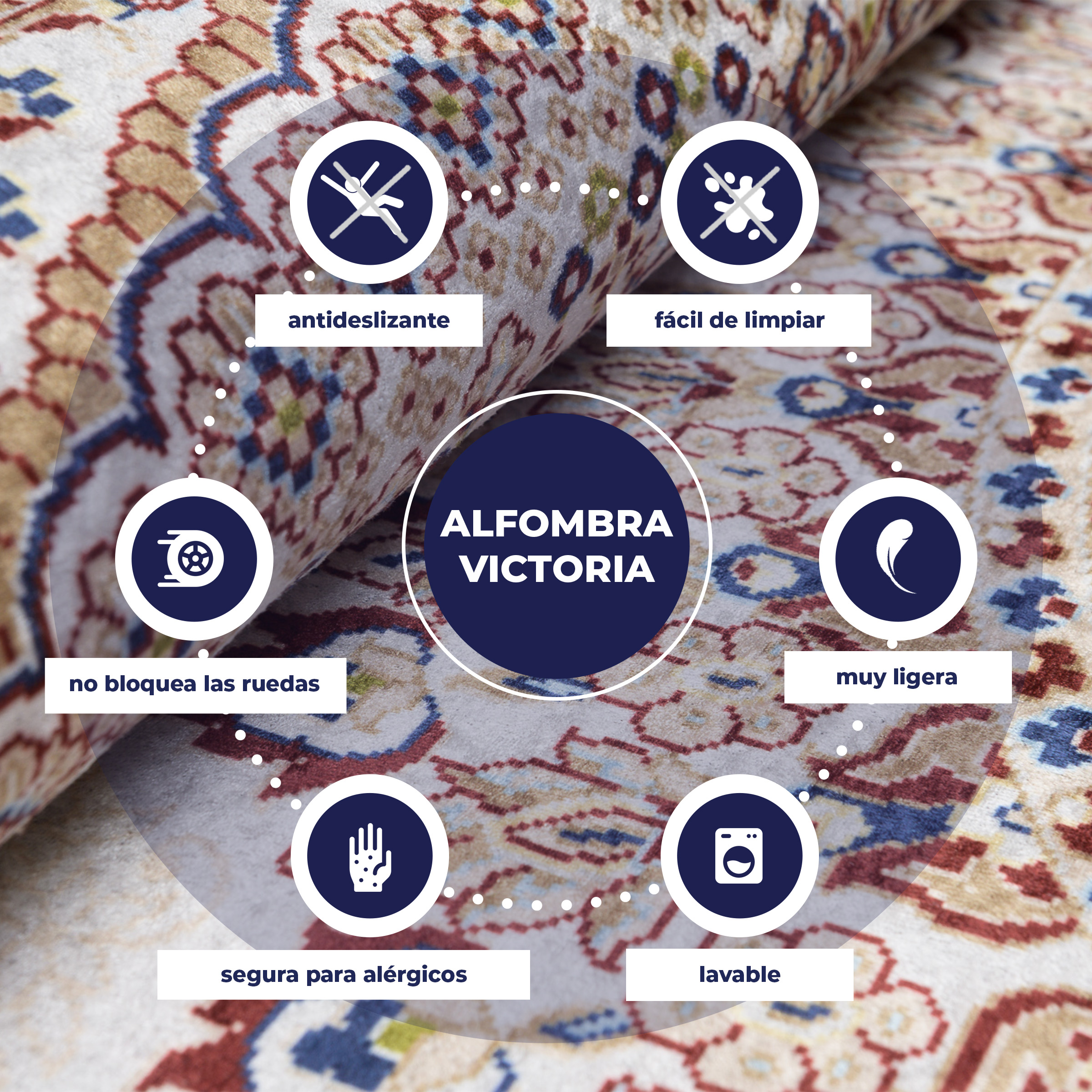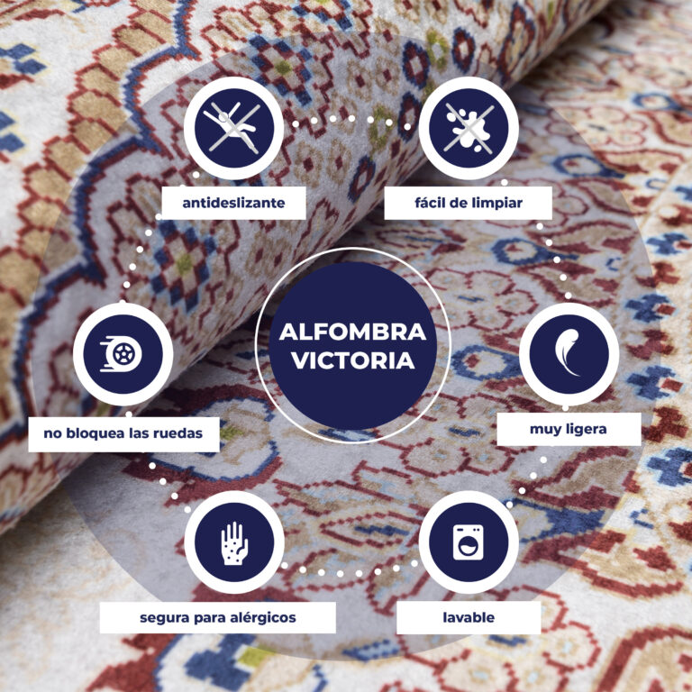 Alle liefhebbers van een traditionele stijl zullen genieten van de antislip gedrukte tapijten uit de Victoria-collectie. Intense kleuren en bijzondere trendy patronen passen prachtig in een slaapkamer of woonkamer in zowel moderne als traditionele stijlen.